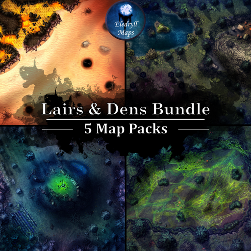 Monster's Lair — A cave opens its darkened maw in a small pinewood clearing. What may lurk inside ? It's up to your players to discover ! Dimensions : 40x30 ; PPI : 100 ; 12 maps