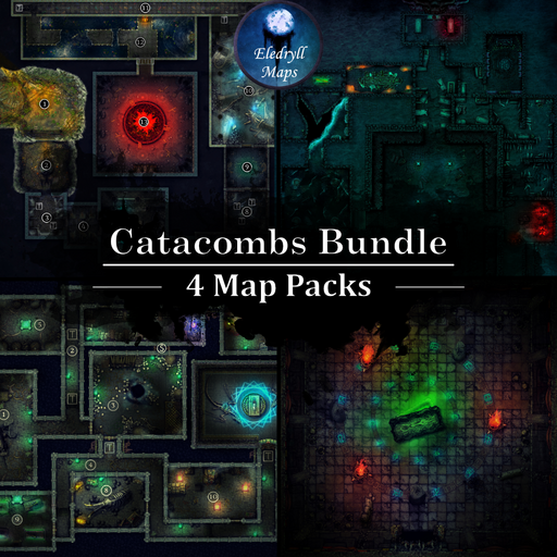 This bundle presents to you a collection of four battlemap packs. Lead your party through perilous exploration and daring dungeons to uncover relics from a bygone age... straight from the curled and cold fingers of the not-so-dead.