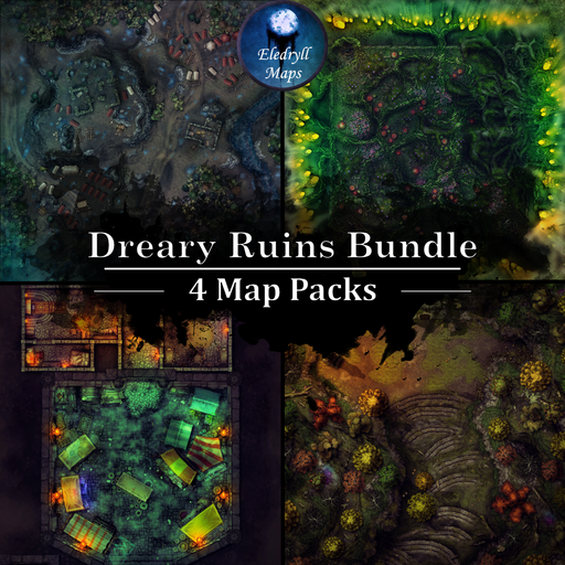 Decay, death and nostalgia have seeped deep into the soil, into the crumbling stone architecture of these places. Thieves gravitate towards them to loot what remains of their previous occupants. Locals avoid them like the plague for they know what dangers lurk behind the ruins. Let your players discover buried secrets and battle forgotten foes with these four map packs themed around ruins.