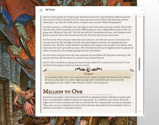 - By picking a trait from your character and using it to justify your chance of success the GM will decide which die you roll - anything from a d4 to a d12. You roll that, while your GM rolls a d7A*. If your outcome die has rolled higher than the GM's Narrativium die, you're successful! But if the Narrativium die is higher, then you've failed, and may now be subject to unforeseen consequences or twists, represented as new traits!