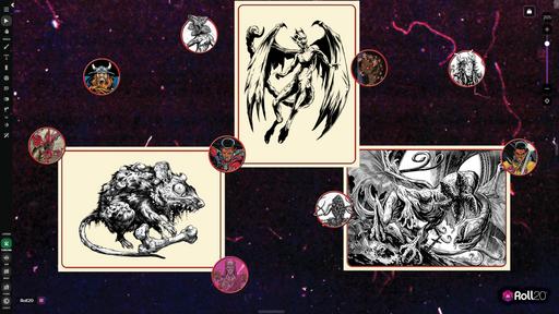 Tokens and Portraits from the Welcome to the Hellfire Club Art Pack, displayed on the Roll20 Virtual Tabletop.
