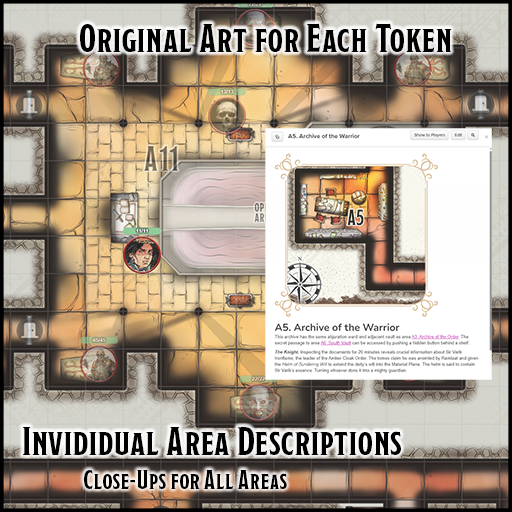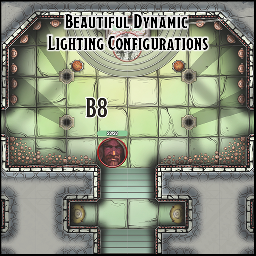 Dynamic Lighting. All map pages of this product have been optimized with Dynamic Lighting features, wall delimitation, and removable doors. Tokens for light sources (dim, regular, sunlight) are also included (requires plus/pro subscription).