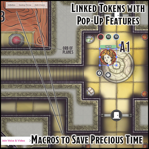 One-Click Macros. Run faster combat sessions with one-click macros. Select a token and watch as macros for core features pop up. The macro auto rolls initiative, saving throws, and skill checks.