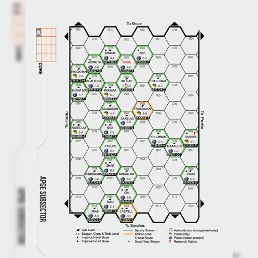 Into this realm enters a bold group of Travellers, seeking fame, fortune and adventure in the hallowed Core sector, the ancient centre of human civilisation, where dreams are made and broken. This book contains everything Travellers and Referees need to travel and adventure in the heart of the Third Imperium, including:
