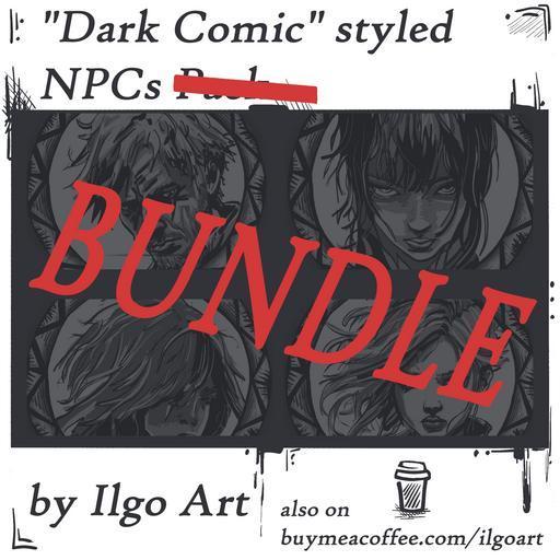 My "Dark Comic" -tokens are continious project of mine to produce art packs for your virtual tabletop RPG experience. Spice up your campaign with consistent look, and check out all of my "Dark Comic" branded assets.