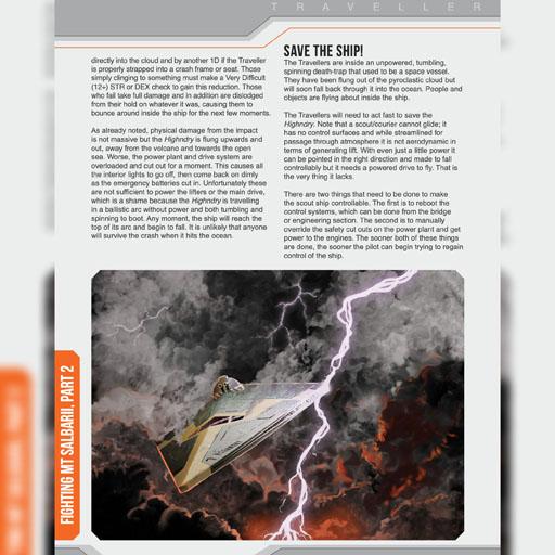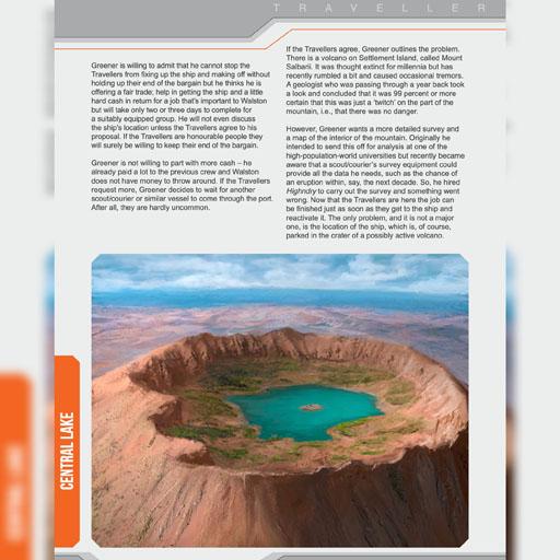 Mission to Mithril: The Travellers land at a rudimentary starport, only to find their vessel disabled and the base strangely empty. As they explore, a distant distress beacon is detected, but reaching it requires an overland trek. Having located the survivors, the Travellers discover their problems are only just beginning…