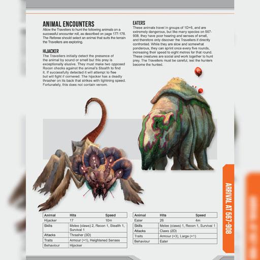 Safari World: A wealthy industrialist needs a qualified crew to accompany him on a hunting expedition to an uncharted world. His prey? A magnificent and mysterious trapper species said to roam the planet. The safari takes on a new dimension when the Travellers discover they are not alone. The residents of 567-908 have eluded discovery for their entire existence, and now that they have been found, they might just be the key that helps the Travellers find their quarry.