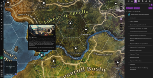 - Modular World map: the GM can reveal locations on the map when the PCs explore them