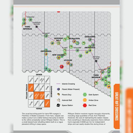Book 2: Deep Space Exploration – What is beyond Charted Space in the cold void of the Great Rift? Push further into the night with this guide to deep space phenomena and the spacecraft that traverse it. Then continue exploring deeper into the Great Rift with the Afawahisa, Touchstone and Riftspan Reaches sectors.