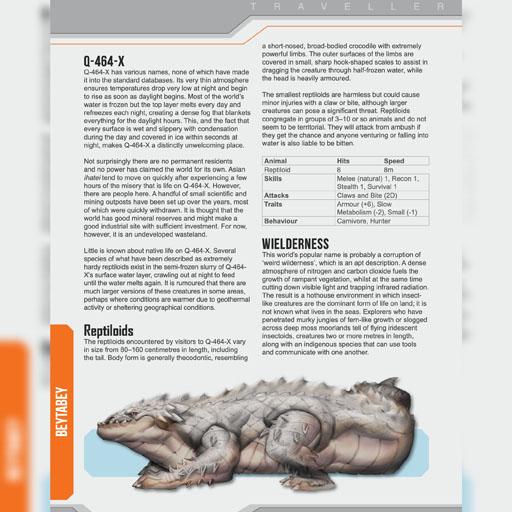 Only the boldest dare venture into the depths of the Great Rift, crossing the abyss of empty space to find unexplored star systems and forgotten wonders. Deep in the Great Rift lie ancient mysteries, strange alien civilisations and human cultures who have not seen offworld contact in centuries. Portside rumours speak of giant creatures capable of interstellar flight, and of starship wrecks belonging to no known peoples.