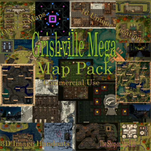 This Mega pack will be everything you could need to run the Grishville setting. It includes over 81 maps with over 16 unique locations. It covers bridges, mines, orphanages, churches and more. This pack could be used to run an entire adventure.