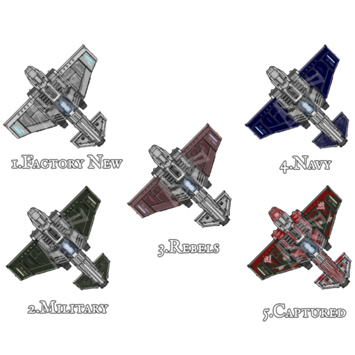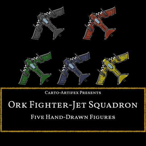 Set of 5 Hand-drawn Fighter-Jets, Works as opposing force for ThunderFire-Jets, be that Space-Orcs or Space Pirates!
