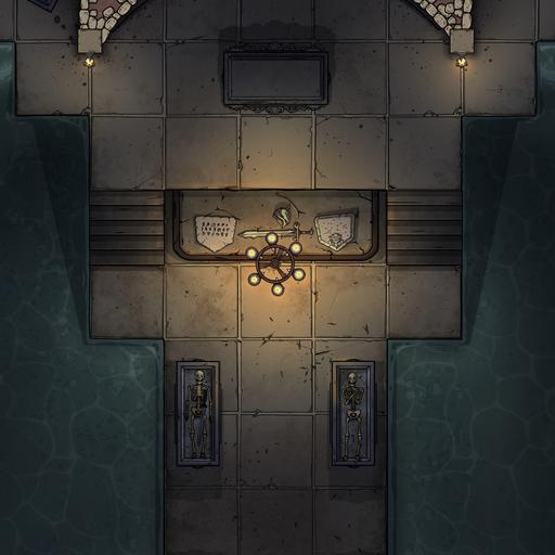 ➤ Crystal Basement. [30x20] Strange corridors of magic crystals, metal walls, eerie sconces, and corpse-filled altars