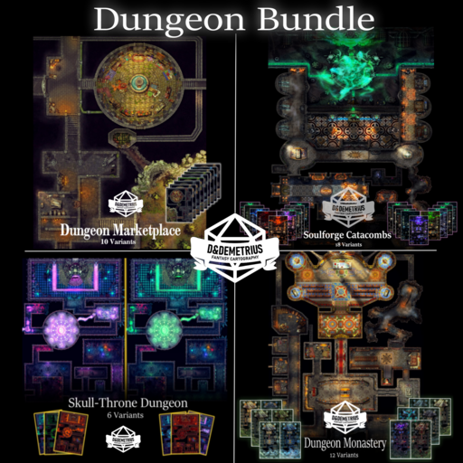 A good dungeon is the bread-and-butter of any campaign! Whether a dungeon-crawl, an extraction, or a simple encounter, you will definitely find a map to prepare your next session and populate it with some baddies! Each pack comes in a multitude of variants for a total of 46 unique scenes. Here's what you get: