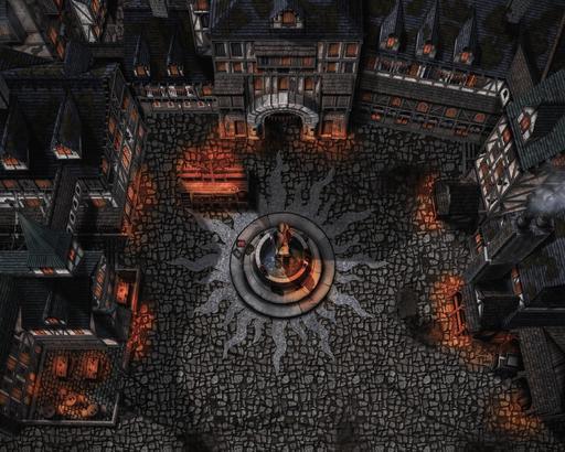 Gothic Town Square: Down in the Gothic Village, the poorer section of town, this area acts as the hub of merchants and get-togethers. The central statue acts as a silent sentinal reminding the villagers of better days and former heroes. Exterior location only.