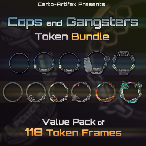 This Bundle contains two of our Hand-Drawn token-sets for total of 118 hand-drawn token-frames that fit the streets of Night City!