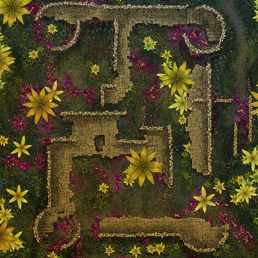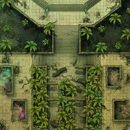 ➤ Fungal Ruins. [20x30] A collapsed castle ruin in the jungle is being engulfed by fungal flora. [🌓 Night & Day Variants]