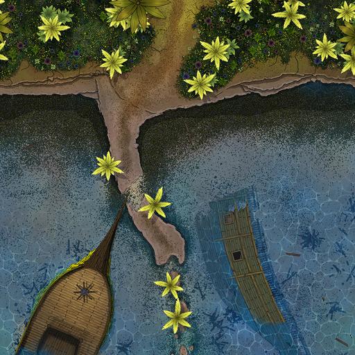 ➤ Beach Wreck. [20x30] A smashed ship is stuck in the tranquil-looking shallows. [🌓 Night & Day Variants] [🪑 Asset Variants]