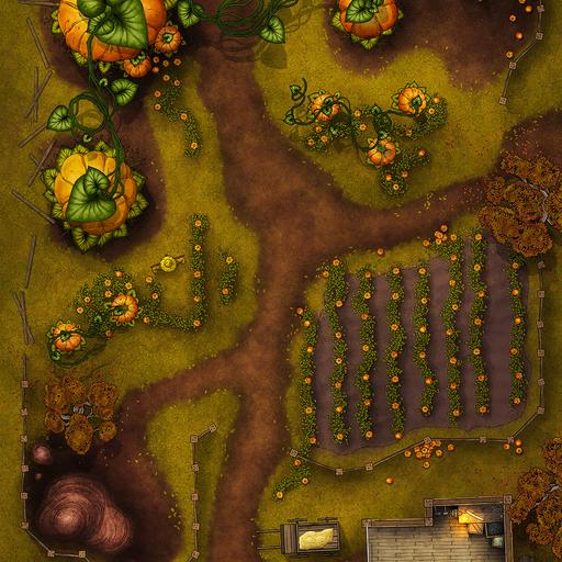 ➤ Pumpkin Patch. [20x30] A farmer's enchanted pumpkin field features pumpkins as large as a giant's head.