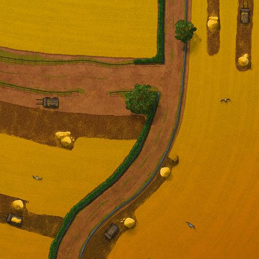➤ Fields of Wheat. [20x30] This map features a winding country road between expansive farmlands.
