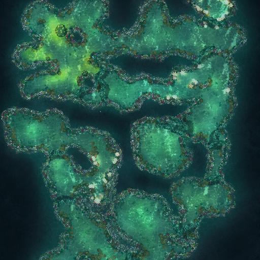 ➤ Shallow Reef. [20x30] Colourful banks of coral in shallow waters, dotted with crevices leading to the depths below. [🪑 Asset Variants] [🌓 Night & Day Variants]