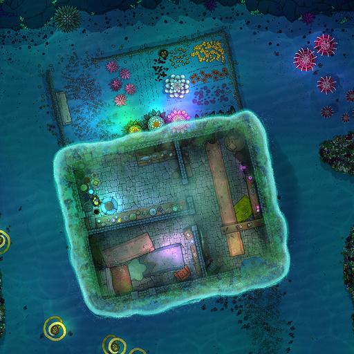 ➤ Sea Hag Hut. [20x33] A deep sea hag's hut surrounded by a magical bubble. A garden of alchemist's herbs grows in the front garden. [🪑 Asset Variants]