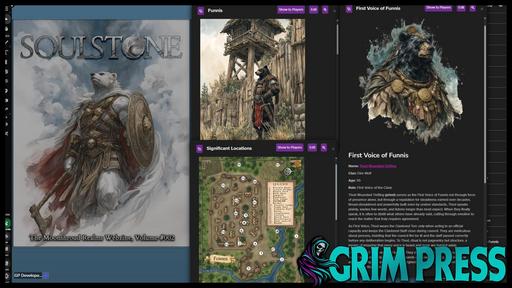 This volume introduces Funnis, a fortified ursinor settlement where strength is tempered by tradition and consensus, and where leadership is earned through action rather than dominance. Alongside this new setting, Soulstone #002 explores divine authority through Soryn, sanctioned power through the Royal Adventuring Society, and the consequences that arise when fear spreads faster than law.