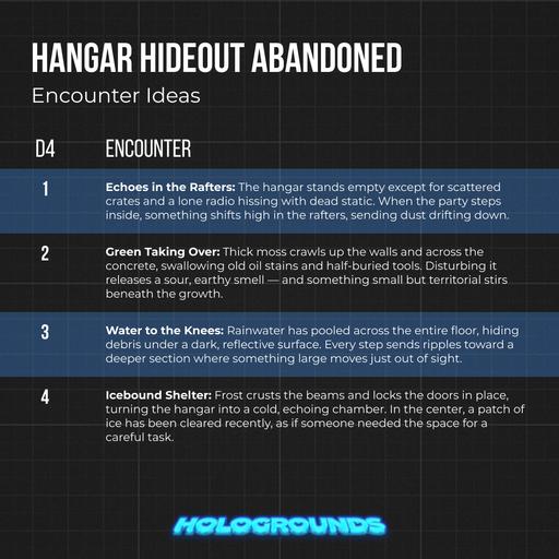 The hangar sags under its own weight, sheet metal rattling whenever the wind cuts across the empty airfield. Old oil stains still mark the concrete, and someone dragged a few crates into a corner like they meant to stay for a while. It feels less abandoned than forgotten, as if whoever used it last might come back for something they left behind...