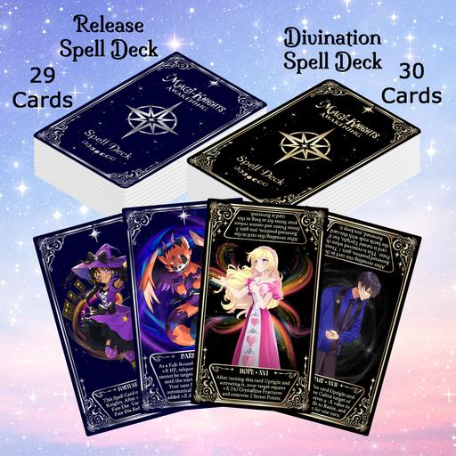 A Spell Deck bundle for a total of 59 tarot-style cards for use with the Release Magic Style and Divination Spell Path in your Magi-Knights Awakening games!