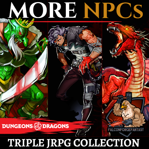 More NPC(s) provides more than 120 anime-inspired, fully illustrated creatures (and stat blocks) to run at your home or virtual tables. We expand on factions instead of a single stat block for a guard. Now you've got Apothecary, Officers, Soldiers, Watchman, and More. Our collection covers the land, sea, and sky, from dark lords to angelic oracles and island sized-fish. Get MORE NPC(s) JRPG into your games today!