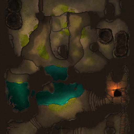 ➤ Owlbear Caves [18x24] Abandoned mine caverns overrun with moss, sunlight, rainwater, and large nests built by giant creatures.