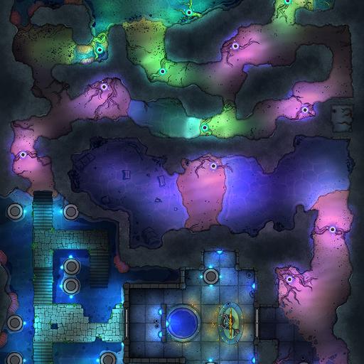 ➤ Faewild Caves. [16x24] A winding network of tunnels encrusted with enchanted glowing fungus, glittering pools and a powerful runic circle.