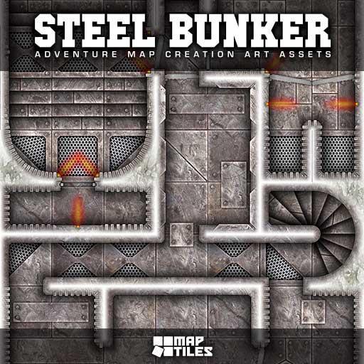 Step into the shadows of a war-torn wilderness with the Steel Bunker Map Tiles, a digital art asset pack crafted for imaginative Game Masters who want to build gritty industrial science fiction-themed adventure maps for the virtual tabletop. This pack of adventure map creation art assets consists of corroded metal plates held together with rivets. Each map tile art asset is a blend of photographic source material with expertly hand-painted details to give your maps depth, character, and a distinctly tactile feel.