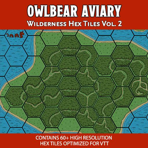 Hex crawl into the wilderness using these beautifully illustrated terrain tiles depicting grasslands, forests, swamps, hills, mountains, deserts, wastelands, snowy tundra, haunted forests, complex roadways and coastlines, and more!