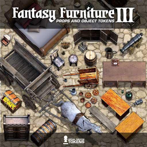 Hammering out an adventure map for your players, and want to fill in the dungeon rooms with props and interesting objects? The Fantasy Furniture III token pack is just what you're looking for. These token art assets can help flesh out virtual tabletop adventure maps, such as adding a bed and a cabinet to an NPC’s bedroom. Or a chest of treasure to the chamber at the end of a dungeon.