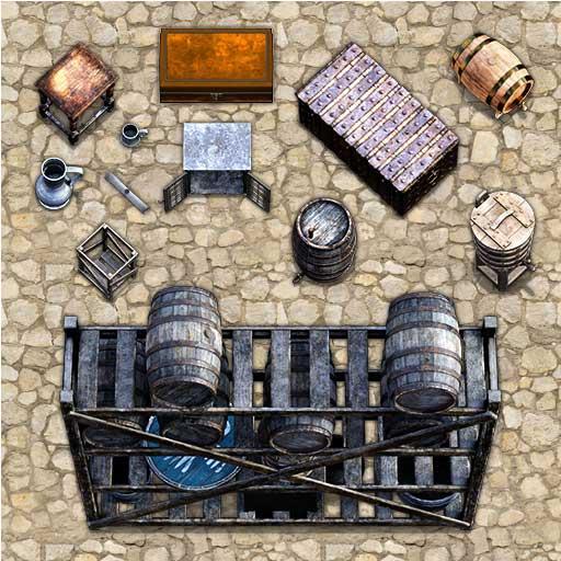 Each Object Set includes a 3D render of the chosen object viewed from above, displayed in a turntable of images showing the object from the main compass points. It is scaled so that one real-world inch equals three pixels on the screen. This creates a 5-foot square map grid, 180 pixels wide, similar to adventure maps from Studio WyldFurr and our Map Tiles adventure map assets.