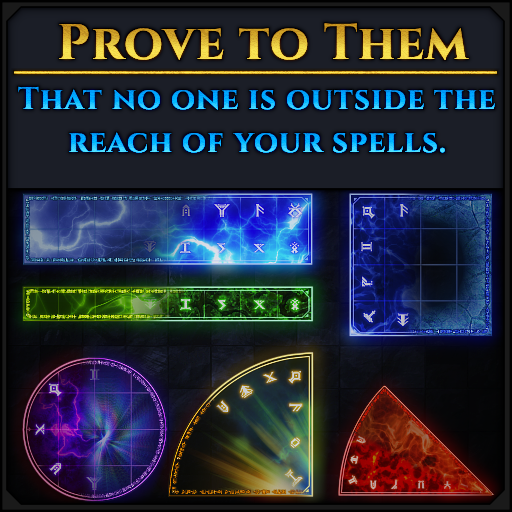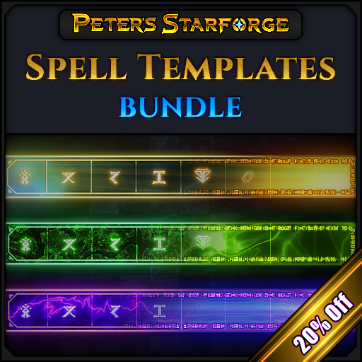 This bundle contains a robust selection of spell area of effect templates that you can use during your game. With the power of magic you can live for thousands of years, see into other people thoughts, grow back that missing limb and now even cast that powerful magic incantations in style like never before! Just drag and drop them onto the battlefield and see the horror in the DMs eyes as you casually select which enemy NPC gets incinerated and who lives to see another round. Prove to everyone that your lighting bolt does, in fact, reach the annoying goblin in the far corner of the room. Position your most powerful fire spells so that they omit any teammate who didn't make fun of your new cool wizard hat. All that power and more will now be at your fingertips! By choosing this bundle you will get every spell at a 20% discount (which we're pretty sure also means that you'll get to cast 20% more spells!). Have fun and happy spellcasting!