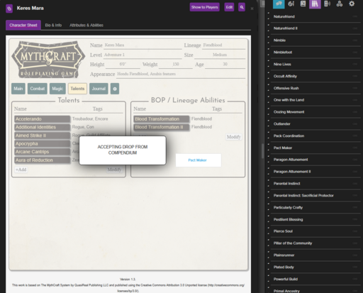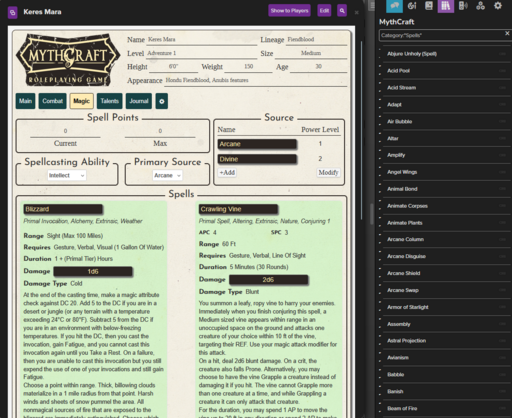 MythCraft features 18 Lineages, 13 Classes, 58 Subclass Tracks, 5 Sources of Magic and 340 spells, 17 Professions, and over 2,000 Talents.