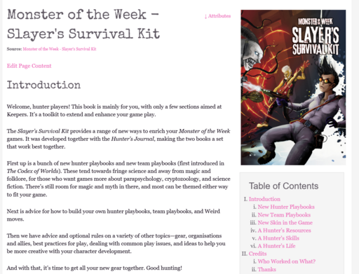 But that's not all! The Slayer's Survival Kit also covers new flavors of Weird moves, new assets and allies, guidelines for using Big Magic and more!