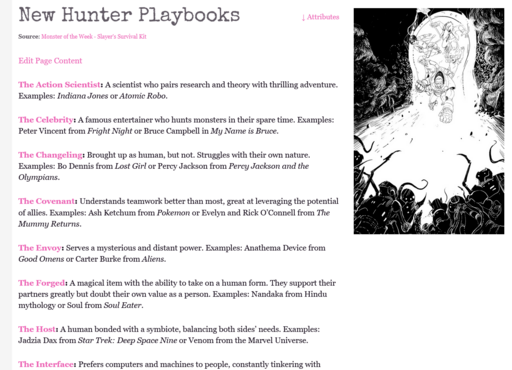 The Slayer's Survival Kit introduces nine new Hunter playbooks and an additional nine Team playbooks! Get ready to dive into adventure as The Action Scientist, The Celebrity, The Changeling, The Covenant, The Envoy, The Forged, The Host, The Interface, and The Visitor!