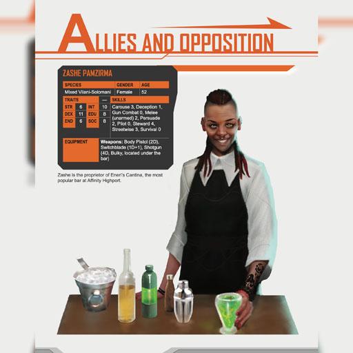 The Travellers become embroiled in these events even though all they really want to do is save their favourite bar. They become pawns in a dangerous political game that might forever change not just Affinity, but an entire way of life… and not for the better. If they play their cards right, they might just find the key to saving Eneri’s Cantina and preserving the things they hold dear.
