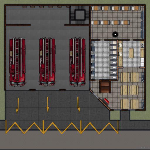 Modern 3-Truck Firehall is part of our Modern Maps Collection. It details a classic firehall found in any small town. There are three levels; versions are provided with and without trucks in the garage.