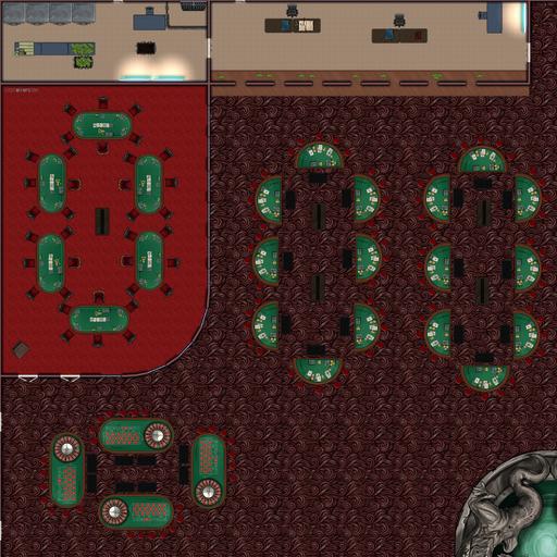 Large Modern Casino is part of our Modern Maps Collection. It details a typical casino of a Las Vegas hotel. It comes in four 40x40 quadrants that fit together to make a massive map. The SE quarter is the lobby, the SW quarter is the lounge, the NW quarter is the table games, and the NE quarter is the slots.