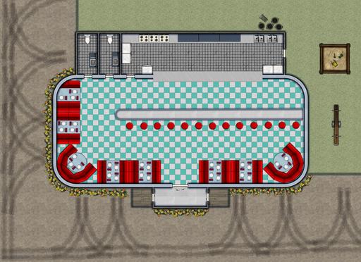 1950's Roadside Diner is part of our Modern Maps Collection. It details the classic roadside diner set in the original 1950s setting as well as a modern retro version.