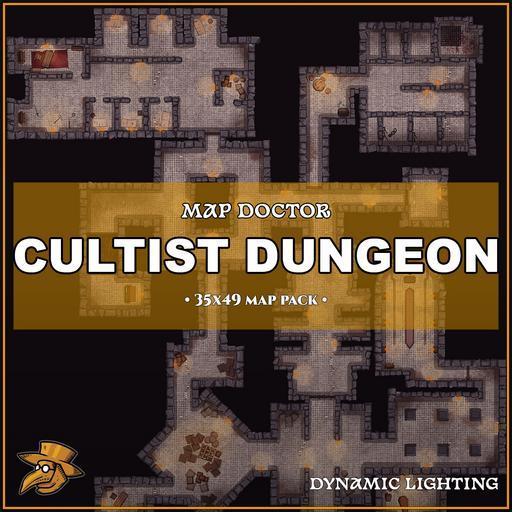 This is Cultist Dungeon in fine apparel, pre-configured with walls, doors, and dynamic lighting to maximize the gaming and adventuring experience!