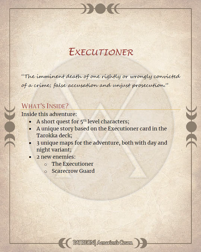 This short adventure takes place in one of the Ravenloft domains and is inspired by the executioner card. The seventh in the Tarokka deck.