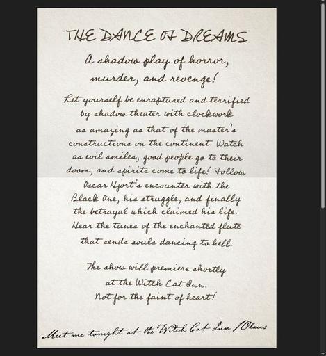 The Society receives a mysterious invitation about "a shadow play of horror, murder, and revenge!" It's up to them to investigate and discover whether there are any supernatural entities involved...