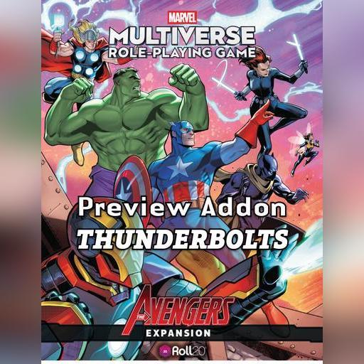 Avengers, assemble! Thunderbolts is a one-shot adventure preview of The Marvel Multiverse Role-Playing Game: Avengers Expansion, the next major tabletop expansion for the Marvel Multiverse Role-Playing Game, featuring all-new playable locations, characters, and legendary equipment to create an adventure unlike any other.