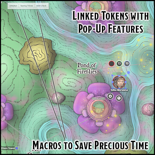 - One-Click Macros. Run faster combat sessions with one-click macros. Select a token and watch as macros for core features pop up. The macros auto roll initiative, skill checks, and saving throws.
