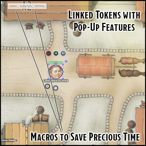 - One-Click Macros. Run faster combat sessions with one-click macros. Select a token and watch as macros for core features pop up. The macros auto roll initiative, skill checks, and saving throws.